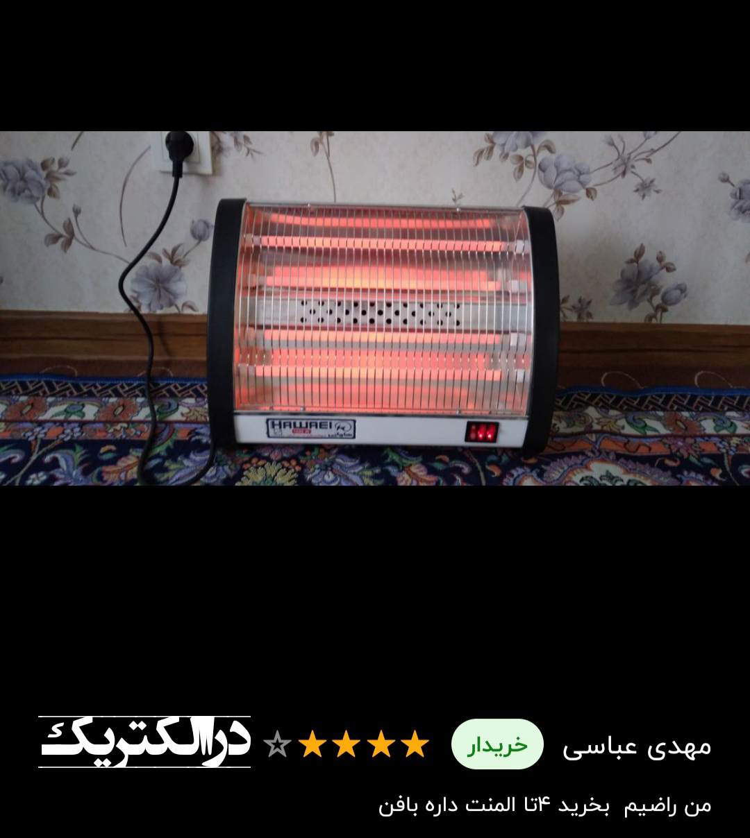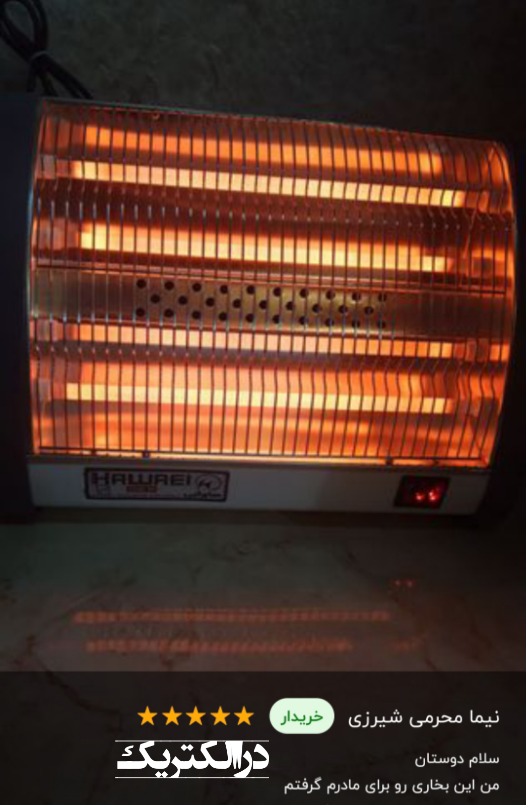 بخاری برقی هاوایی فوق مناسب گرمایش مسکونی، تجاری و اداری است. هیتر دارای 4 عدد المنت هالوژنی است که هر کدام توان معادل 400 وات مصرف میکنند و توان کل بخاری 1600 وات است. در پشت المنتها فن نصب شده است تا گرمای تولید شده موثرتر پخش شود. صفحه منعکس کننده به کار رفته در بخاری، باعث انعکاس گرما و افزایش بازدهی میشود.