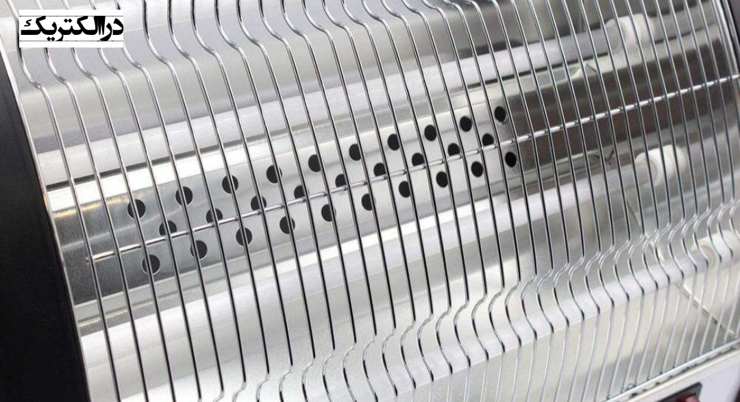 در بخش جلوی بدنه، 3 کلید نصب شده است که دو کلید برای روشن و خاموش کردن المنتها و کلید سوم برای کنترل فن است. طراحی محصول استاندارد است، بنابراین تمامی انرژی دریافتی به گرما تبدیل میکند و رتبه مصرف انرژی آن A است. سیمهای مصرفی، روکشدار نسوز هستند؛ همچنین کابل، دو شاخه و کلید مصرفی نیز از مواد استاندارد ساخته میشوند. پوشش رنگ پودری الکترواستاتیک و جنس بدنه ABS، باعث شده است تا بخاری در برابر حرارت مقاوم باشد.